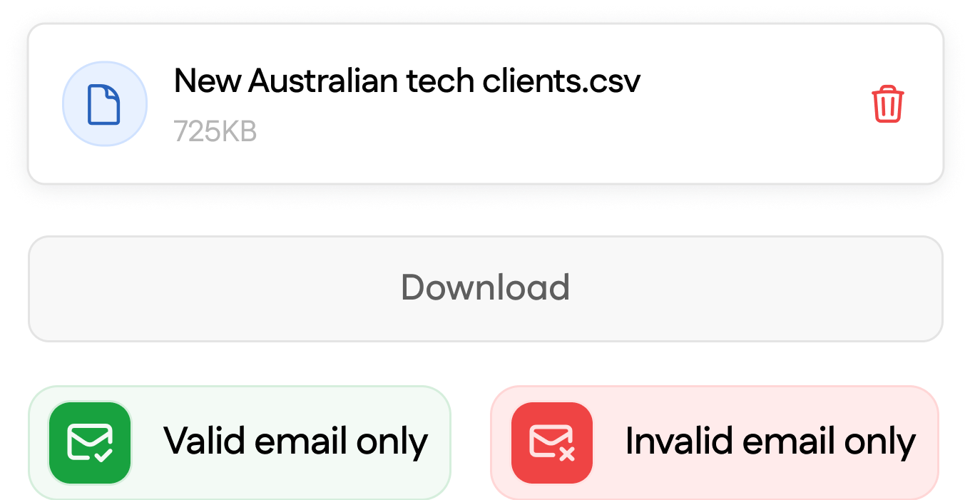 Upload your list, pick a validation level, and get accurate results in minutes.