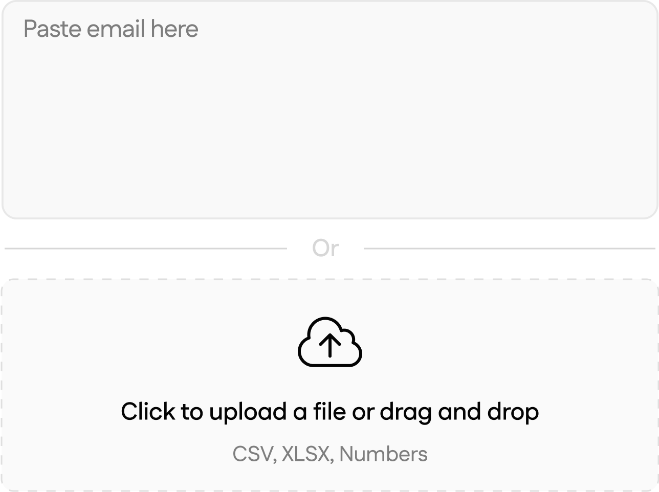 Upload your email list in CSV, Excel, or plain text, or paste emails directly. Perfect for small lists or bulk uploads with ease.