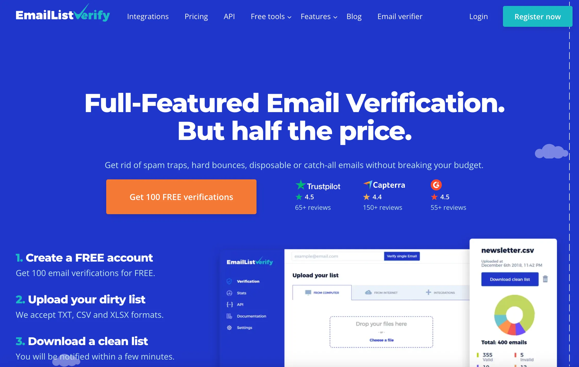 EmailListVerify is positioned as a budget-friendly verifier, rather than a full email deliverability or monitoring platform.