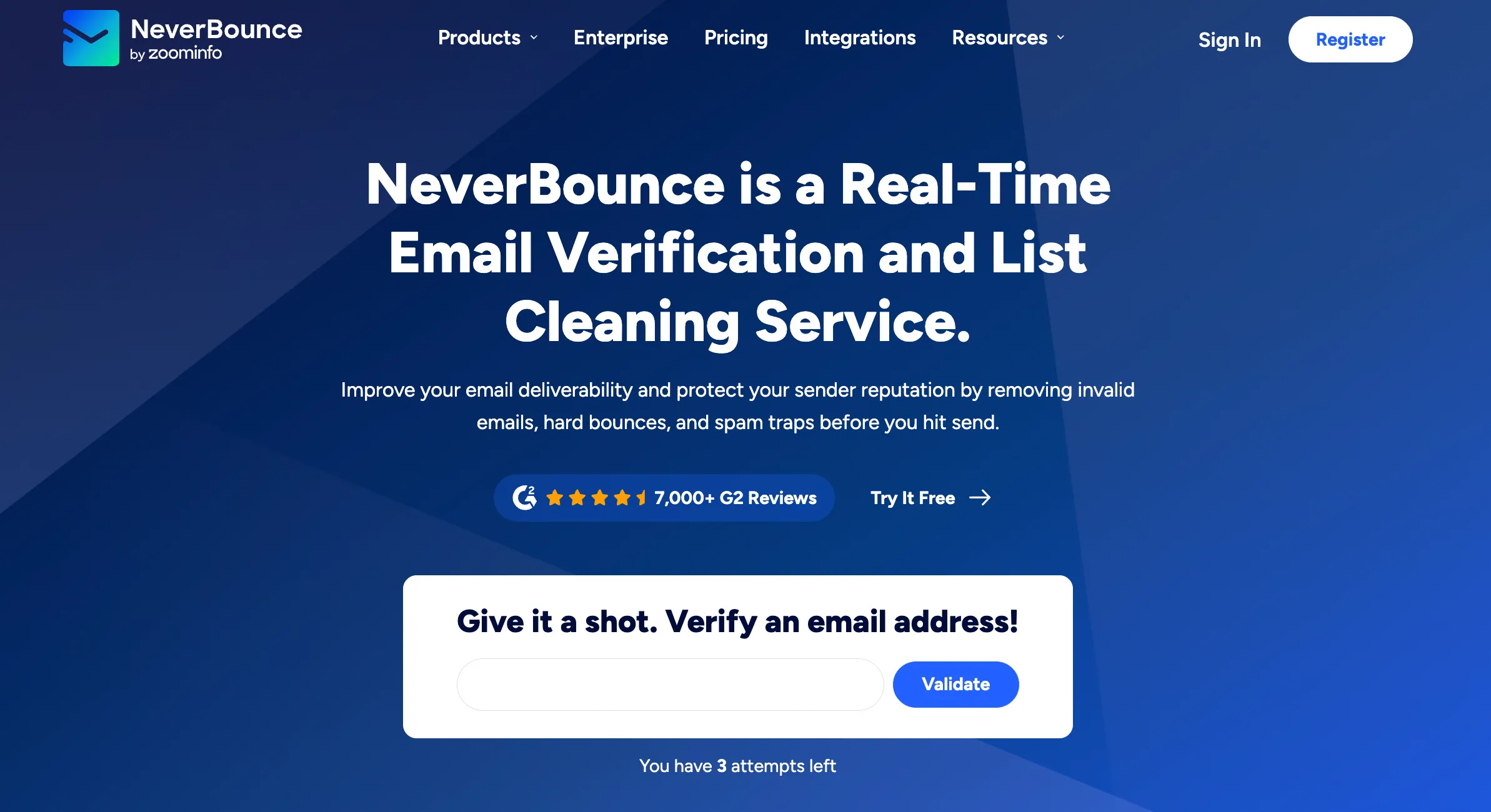 For teams where scale and throughput are the primary concern, NeverBounce offers a verification-first approach without additional sales or enrichment features.