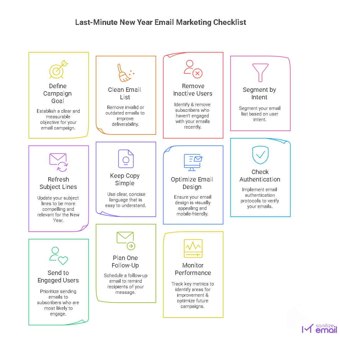 If you’re short on time, this last-minute New Year email marketing checklist focuses on high-impact actions you can still take to protect deliverability, improve engagement, and start the year on the right foot without rebuilding your entire email strategy.