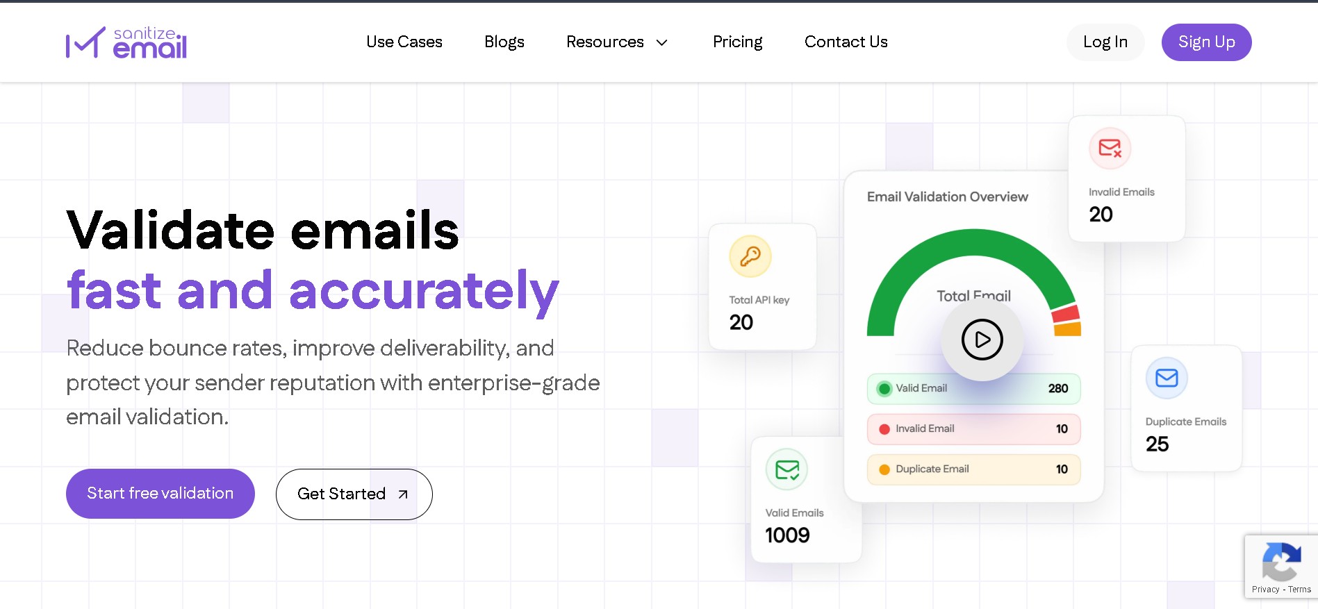 SanitizeEmail is an email verification, email validation, and email cleaning platform that helps you protect your sender reputation and improve email deliverability. Whether you upload a list or validate a single address, SanitizeEmail checks every email across multiple layers like syntax, DNS, DMARC, and SMTP to determine if it is safe to send to.
