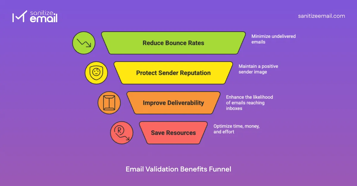 Email providers like Gmail, Outlook, and Yahoo track how responsibly you send emails. Sending to bad addresses repeatedly can damage your sender's reputation, even if your content is legitimate.