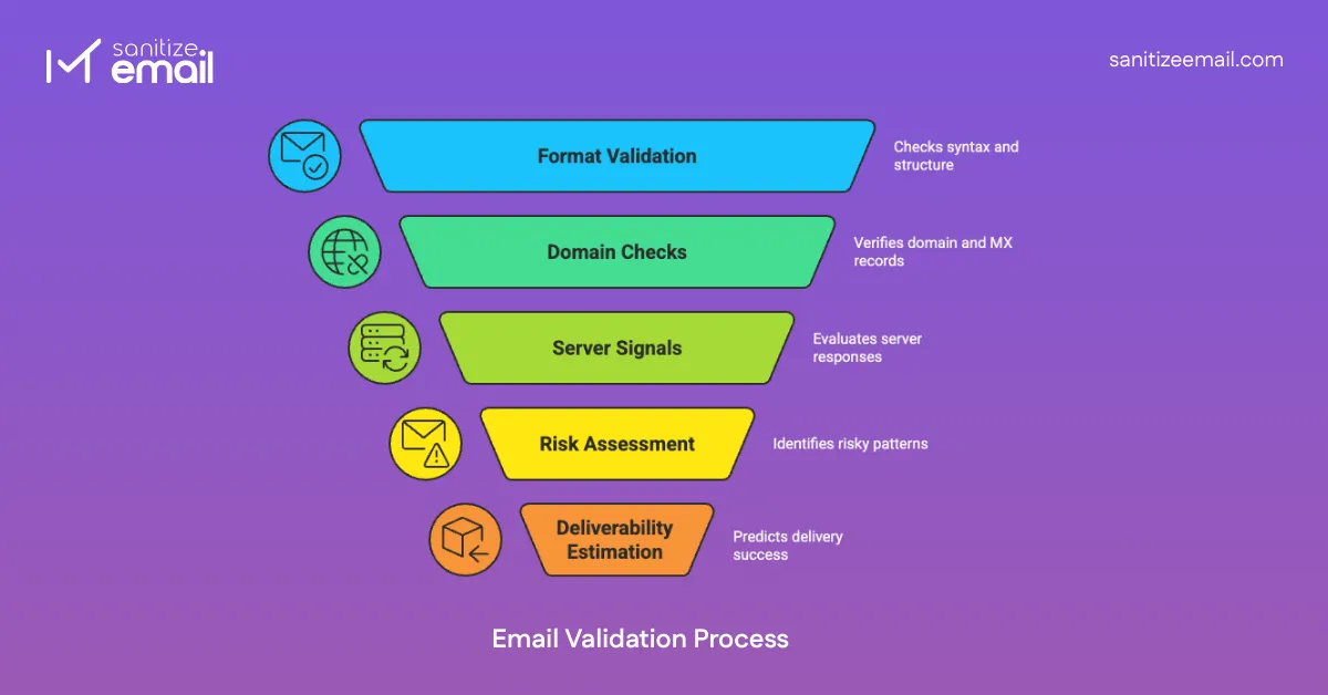 Modern email validation does more than simply check whether an address "looks correct." It evaluates how email providers, domains, and mail servers respond to verification requests, and then combines these signals to estimate deliverability risk.